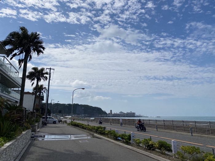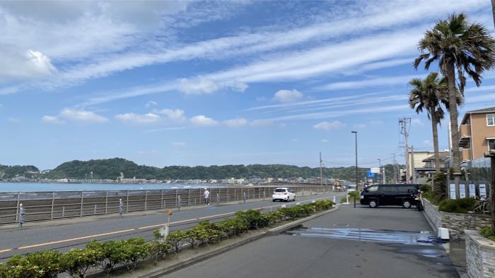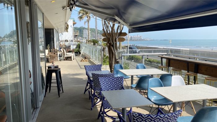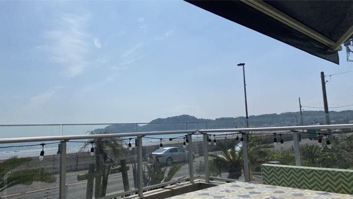 ▲ お昼に8kmのランニングに出て走り終え、材木座テラスの前を通りかかったら、何とテラス席からお友達が手を振っていた。