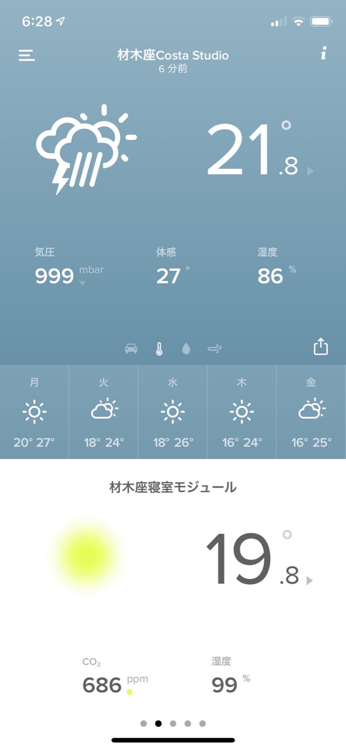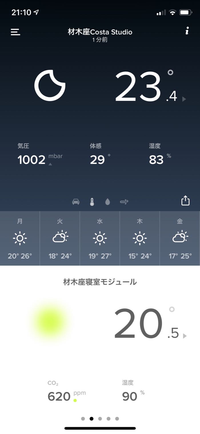 朝の寝室の気温は前日より1.2度高い19.8度と2日連続で今年最高を更新。