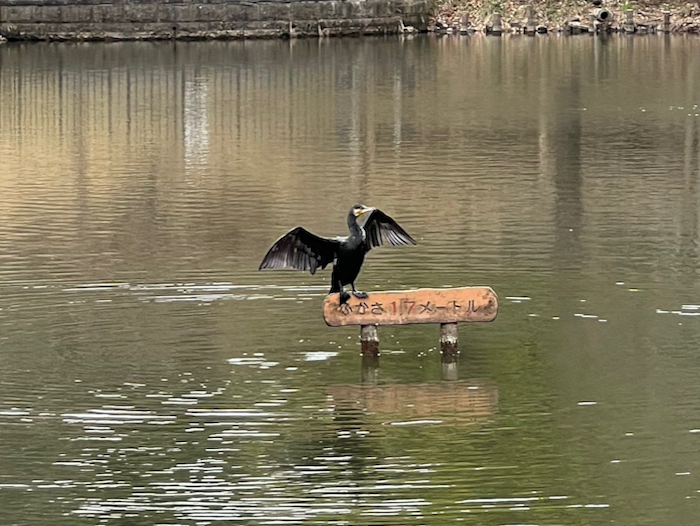 徳生公園の池にクロサギがいる、と思ってスマホのカメラを構えたらポーズを取ってくれた。