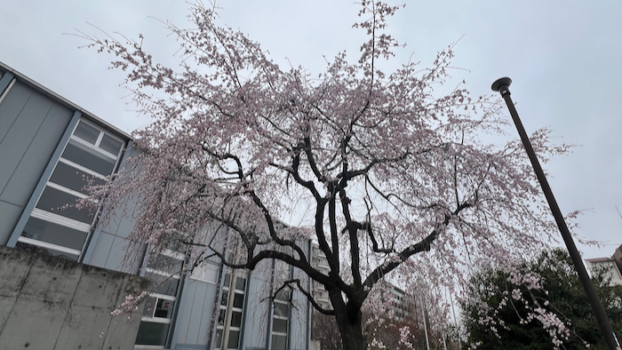 カワウと枝垂れ桜とペペロンチーノ