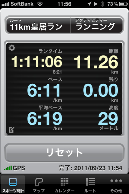 △ 久し振りの皇居11kmラン。タイムは全然ダメだったけど楽しかった。レースに向けて走り込まなきゃ。