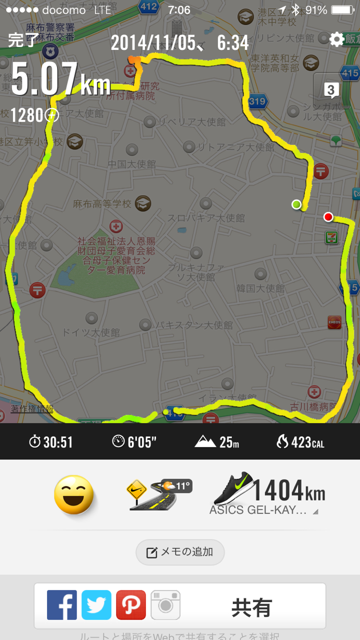 というわけで、疲れを感じつつもせっかく時間に余裕があるので5kmラン。
