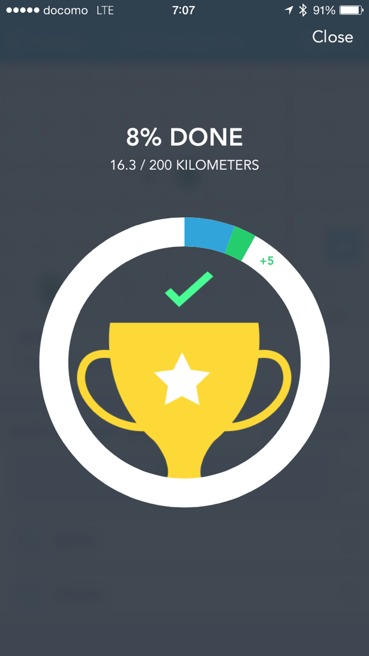 今日の走行距離/今週の走行距離/今月の走行距離/今年の走行距離:5.0km/15.0km/15.0km/1264.0km