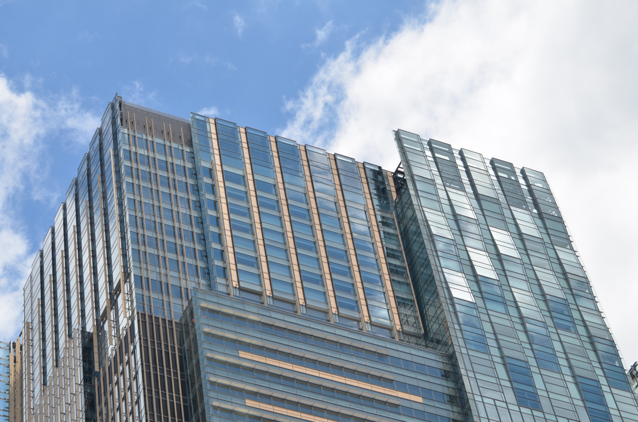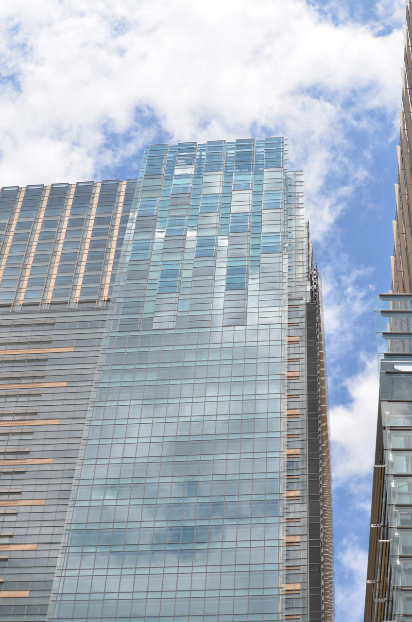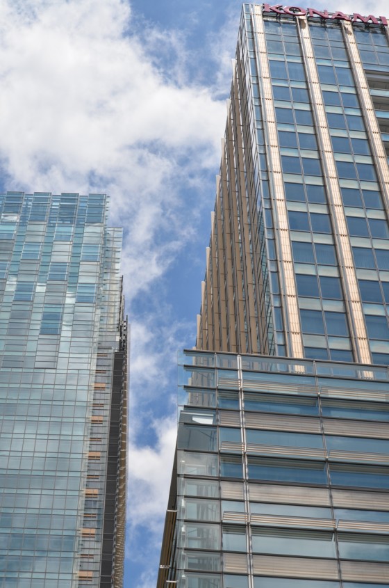 ミッドタウンのガラス張りの建物に、反対側の雲が映っているのに気づいた。