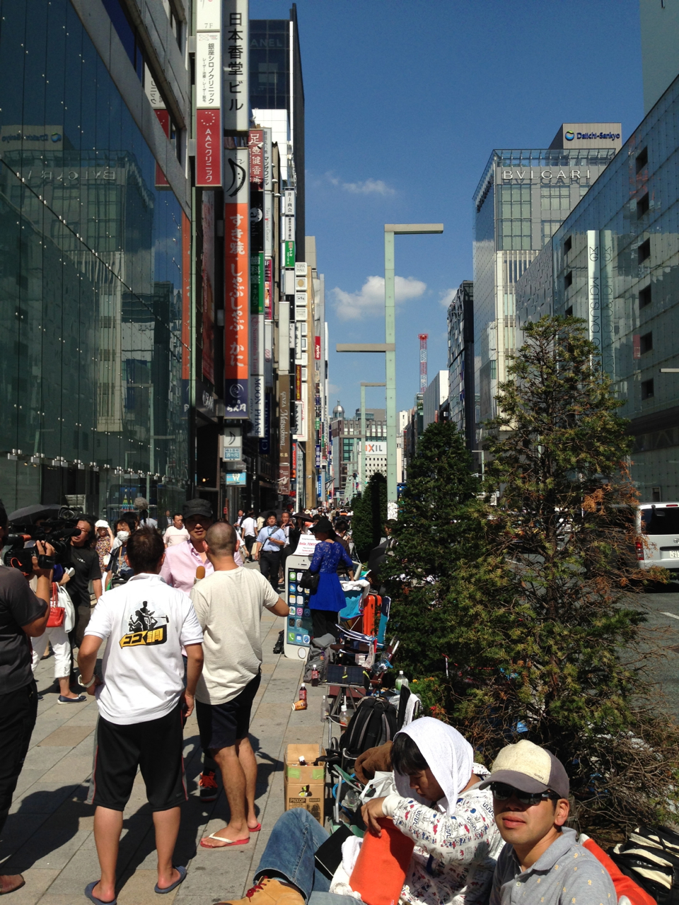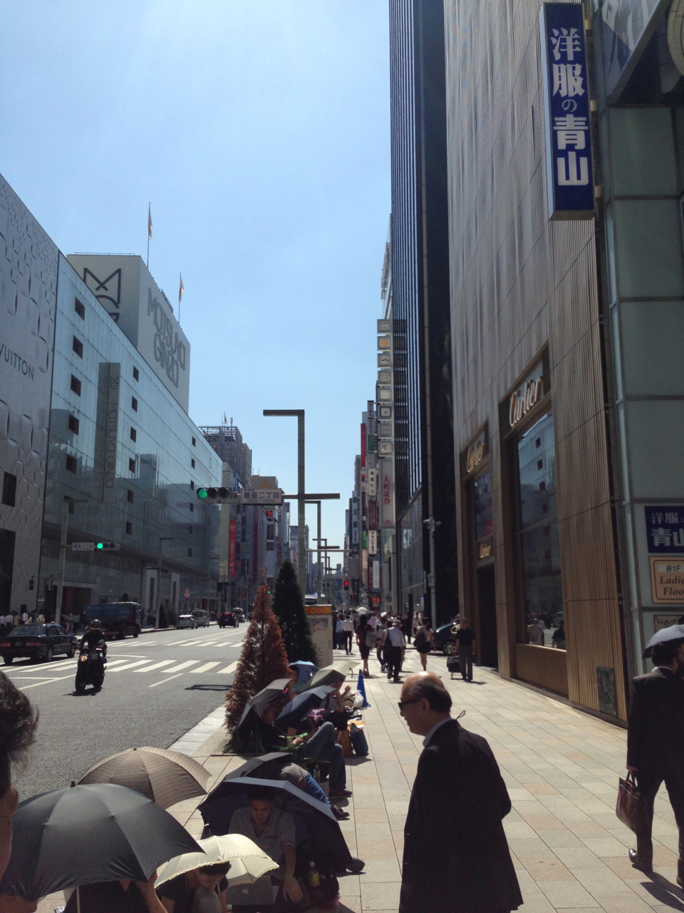 Appleストアは遥か彼方。カルチェのお店の交差点より後ろになってしまった。これはショック。