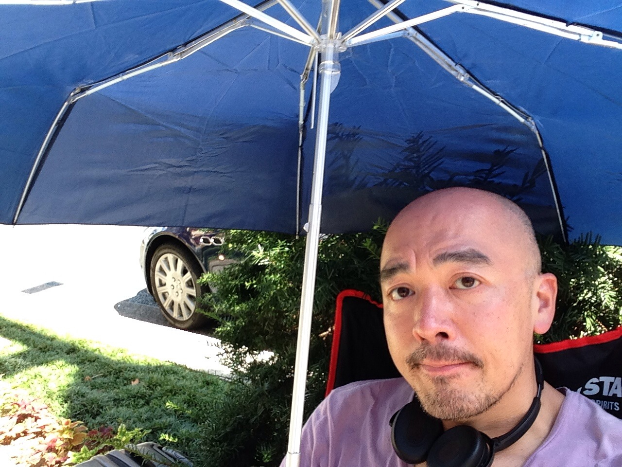 傘がないと暑くて座っていられない。