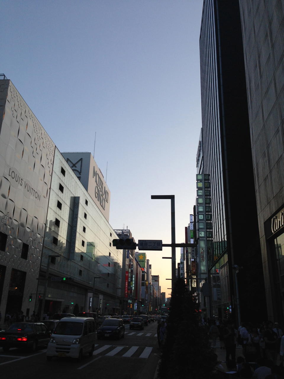 銀座の夕暮れ。