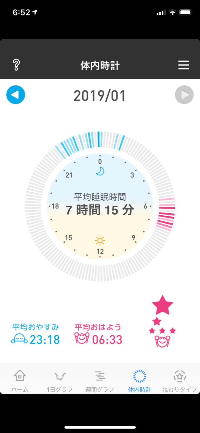 1月は月間平均7時間30分睡眠と、平均おやすみ時刻を22:30にすることが目標。