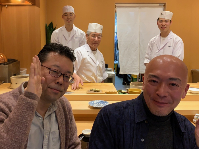 ▲ 夜も樺沢さんとお寿司修業。木場谷へ。