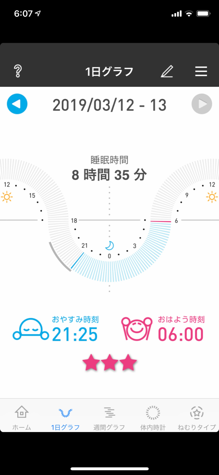 21:25に寝ているわけだから、目覚ましで起きるのもまったく苦痛ではない。