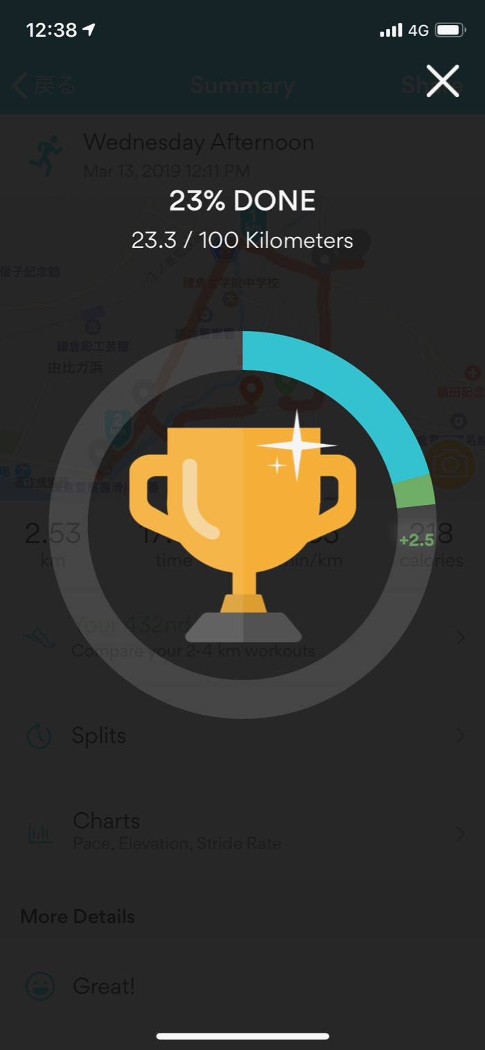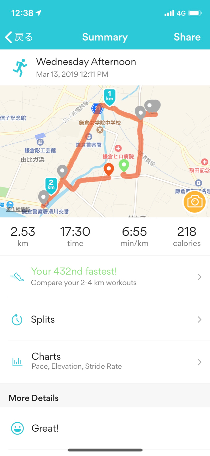 ▲ というわけで、逃げ帰ってきて2.5kmラン。