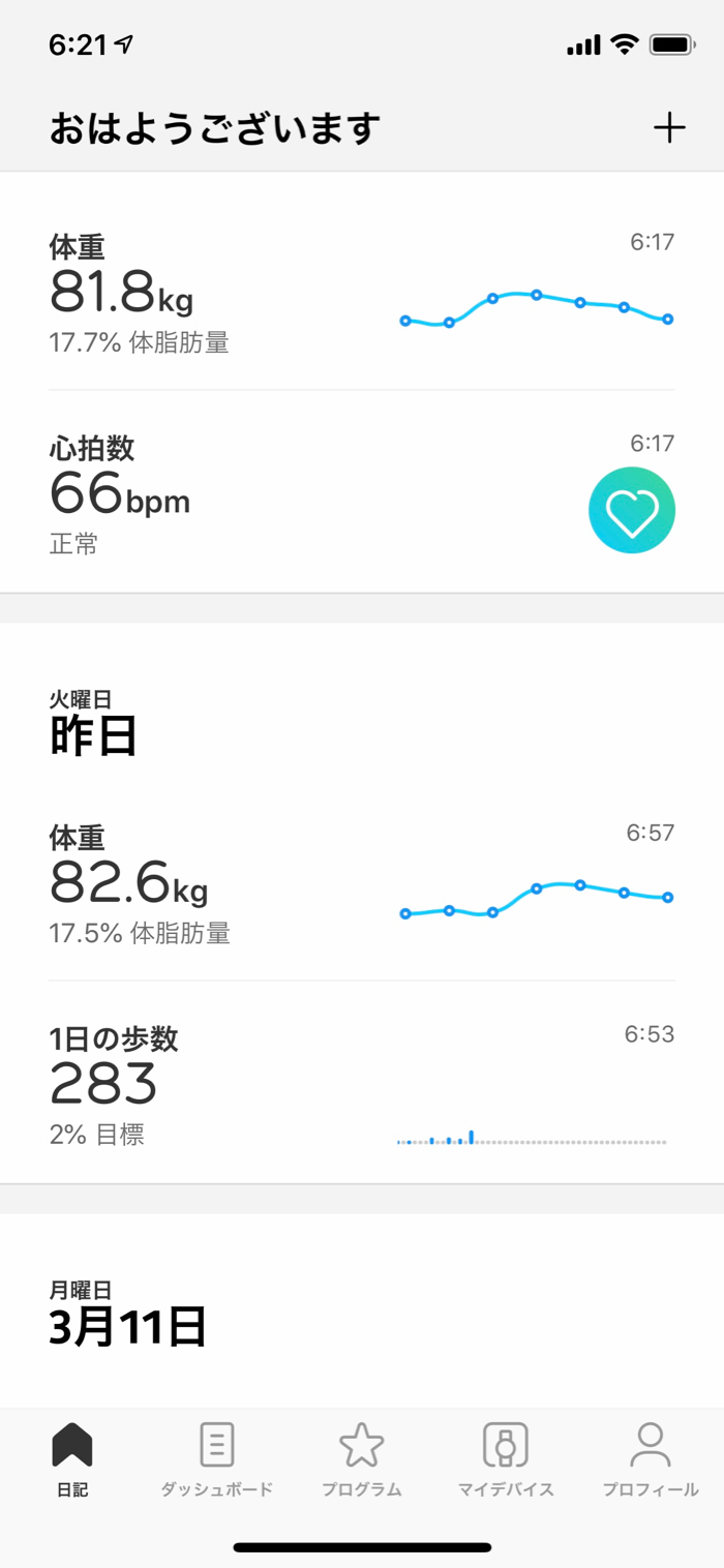 ▲ 体重も良い感じで減って整ってきた。