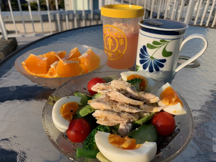 ▲ 屋上朝ごはん。ちょっと寒いけど爽やかで気持ちが良い。