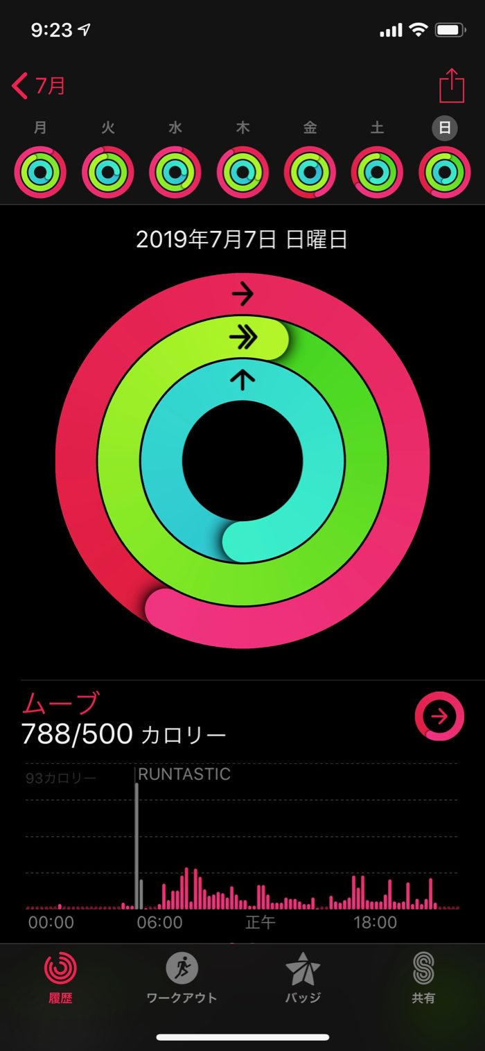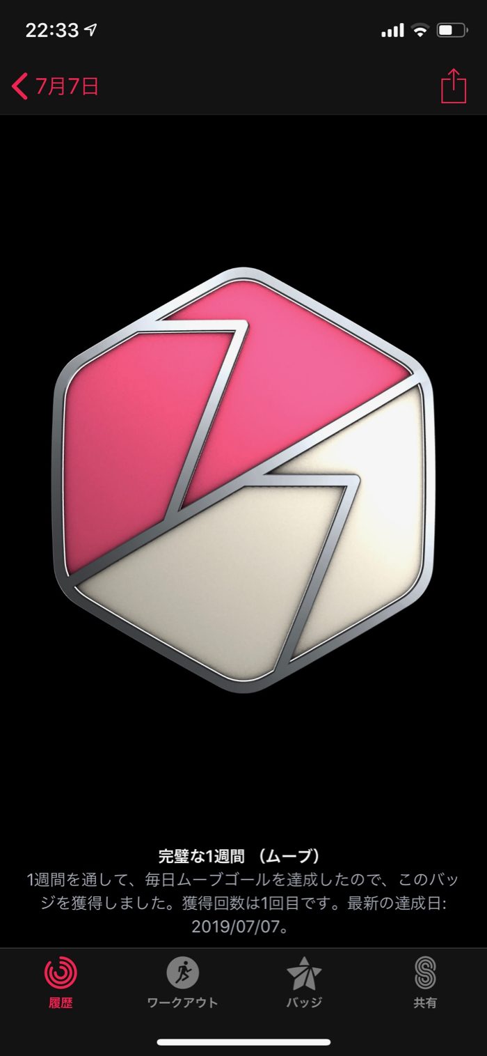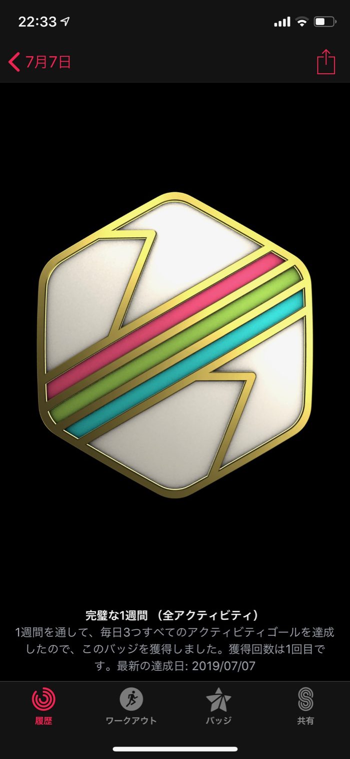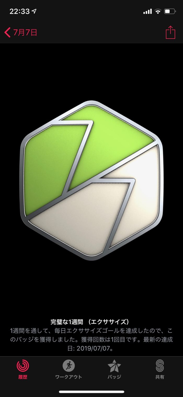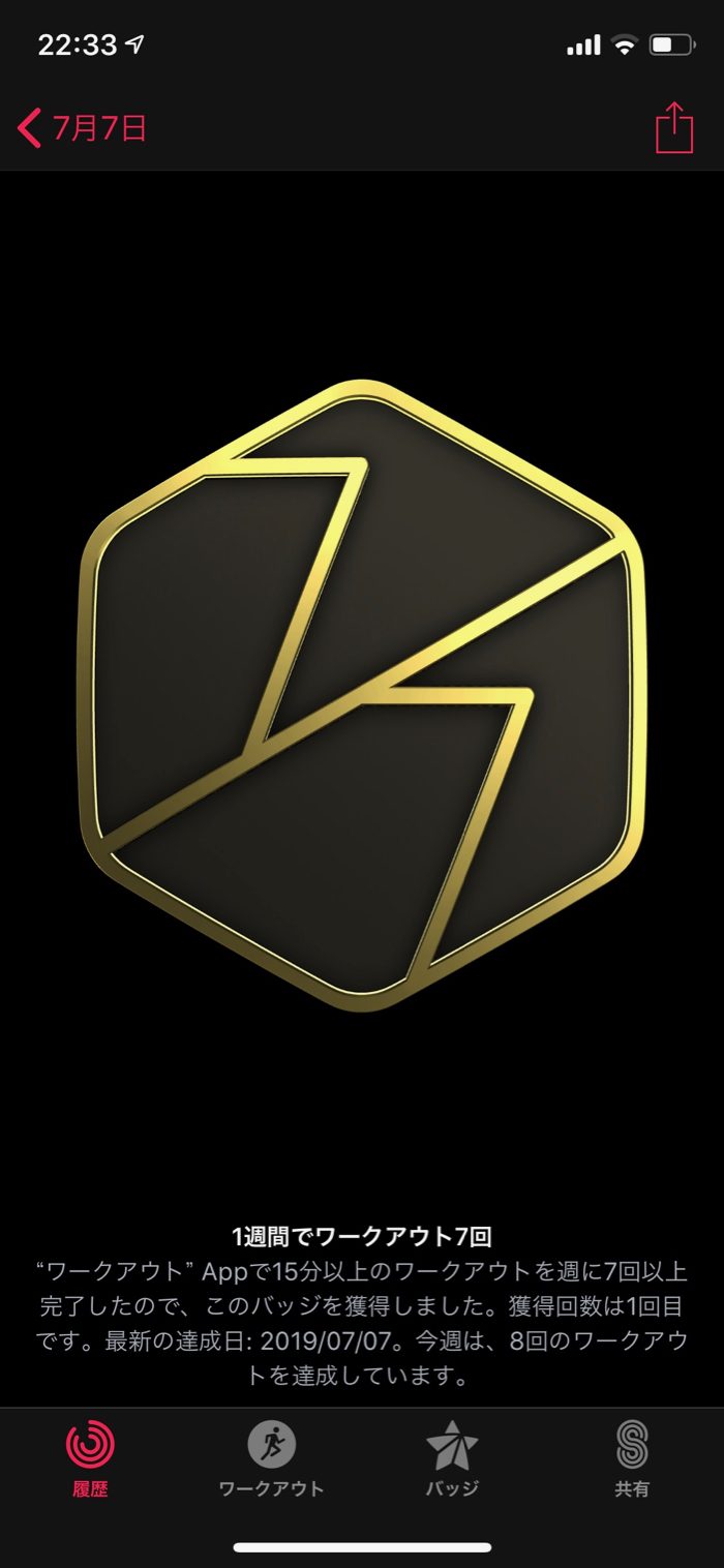 ▲ ワークアウト7回バッジも獲得!メダルラッシュ。