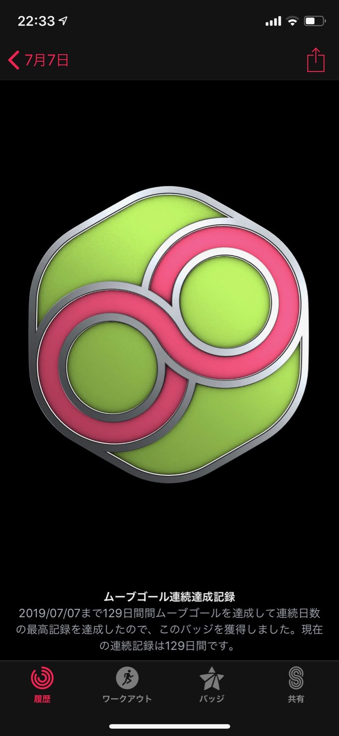 ▲ そしてムーブの連続達成は、これで129日になった。