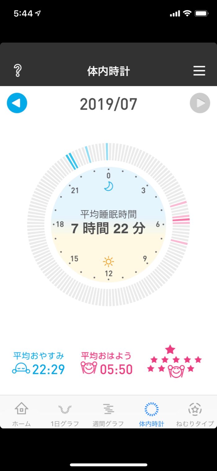 7月は月間平均7時間30分睡眠と、平均おやすみ時刻を22:30にすることが目標。