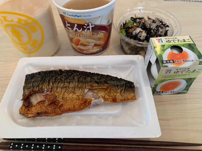 しかも、梅ちゃんのお味噌汁を持ってくるのを忘れて、コンビニで買う羽目に。