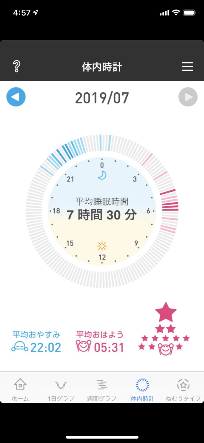 7月は月間平均7時間30分睡眠と、平均おやすみ時刻を22:30にすることが目標。
