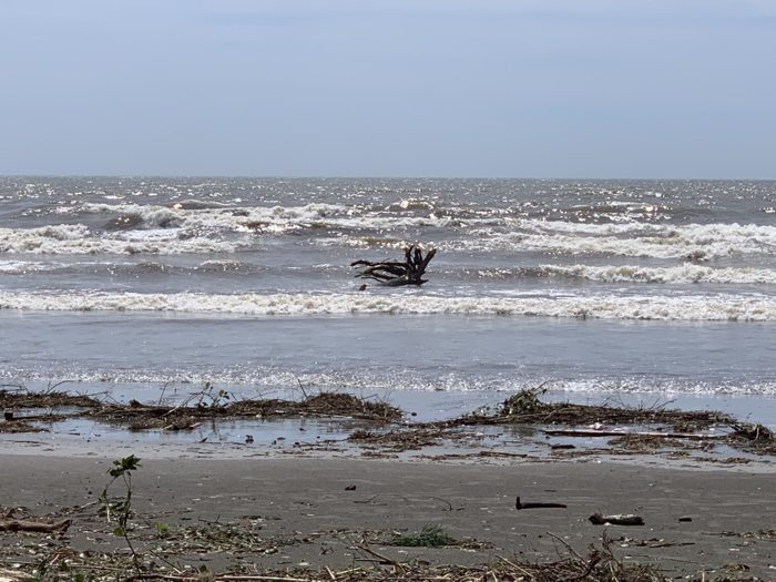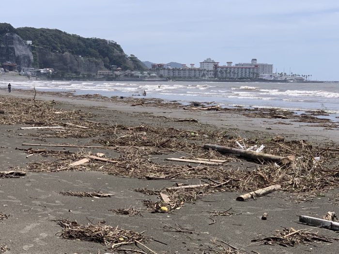 砂浜には無数の漂着物が打ち上げられていたが、倒木もないし飛んできたものもない。