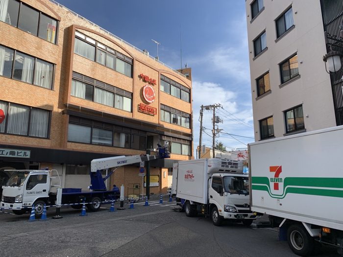 午後に買い物に行ったときにチェックしたら、もう看板は撤去され、窓の修理が行われていた。