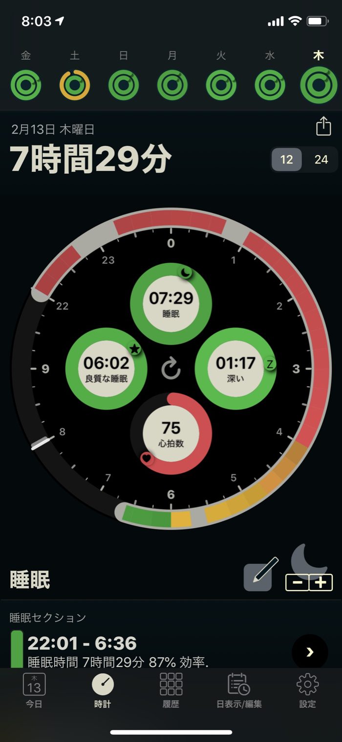 ▲ AutoSleepにも、電車の中て寝ていた時間がハッキリ認識されている。