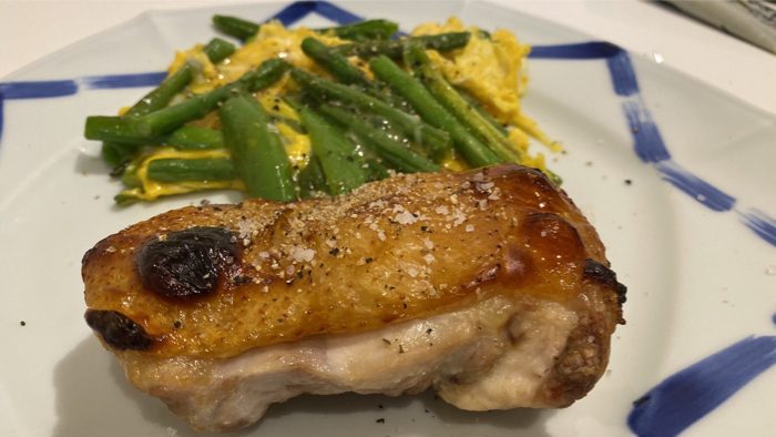 チキングリルと野菜と卵の炒め物。