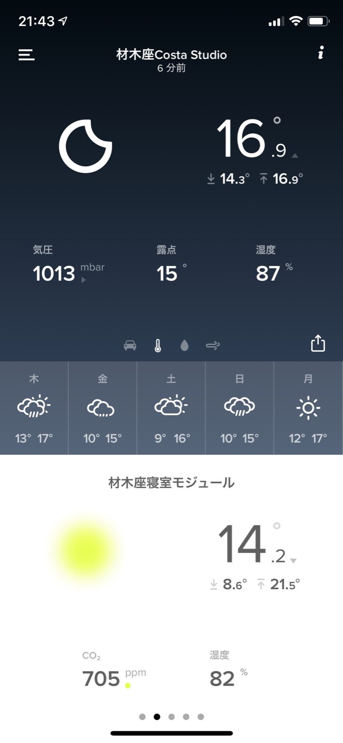 夜の室温は前日より9.4度も高い14.2度。