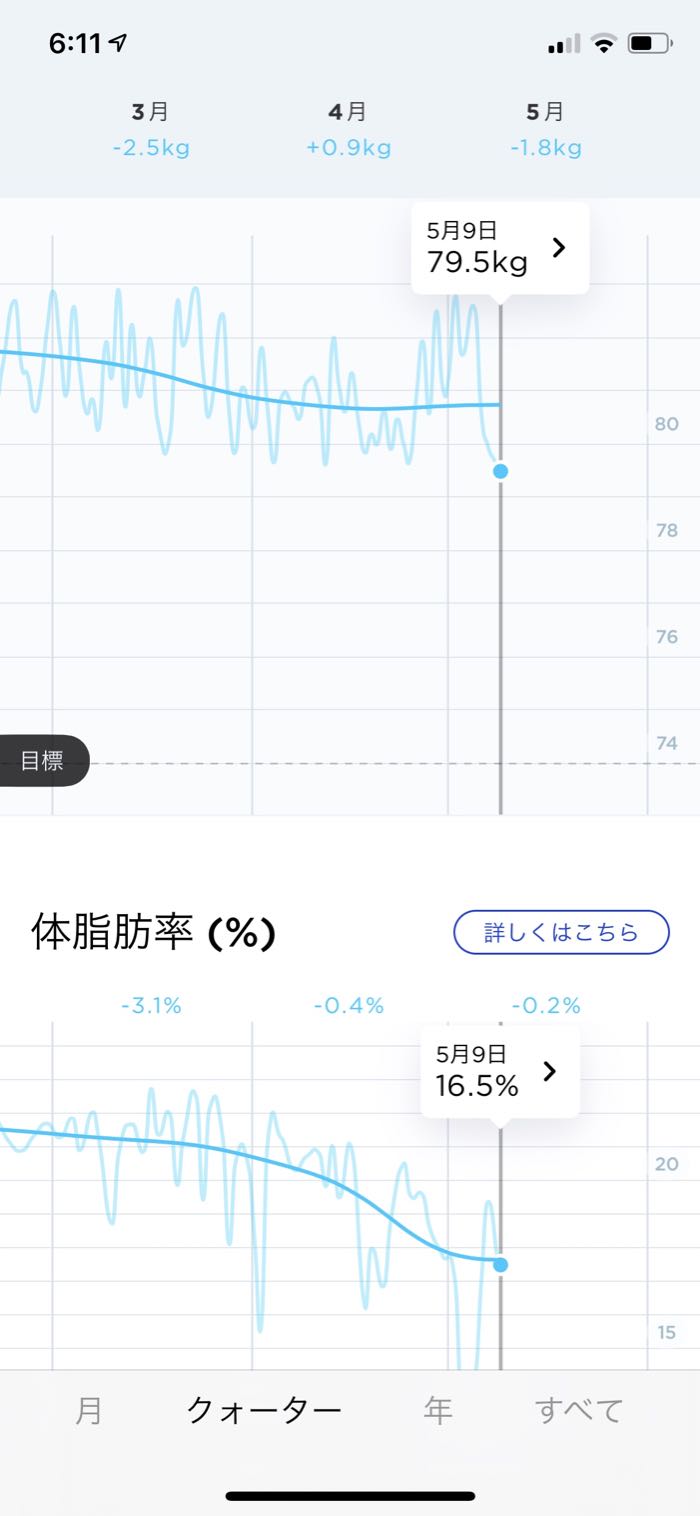 ▲ 体重も体脂肪率も落ちて良い感じ。