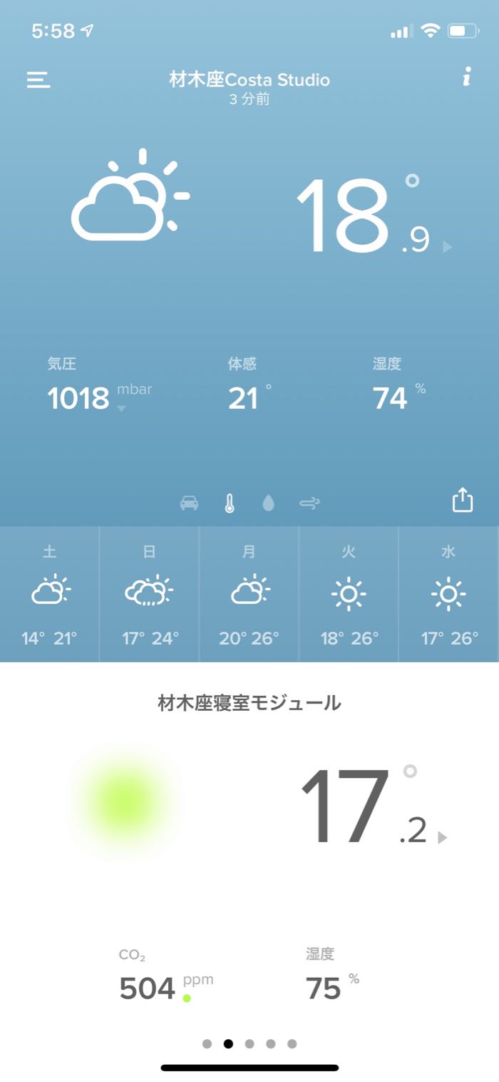 夜の寝室の室温はスクショ撮り忘れ。前日は17.4度。