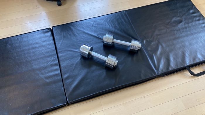 ▲ ダンベルスクワット 5kgのダンベルで13回 x 3セット。