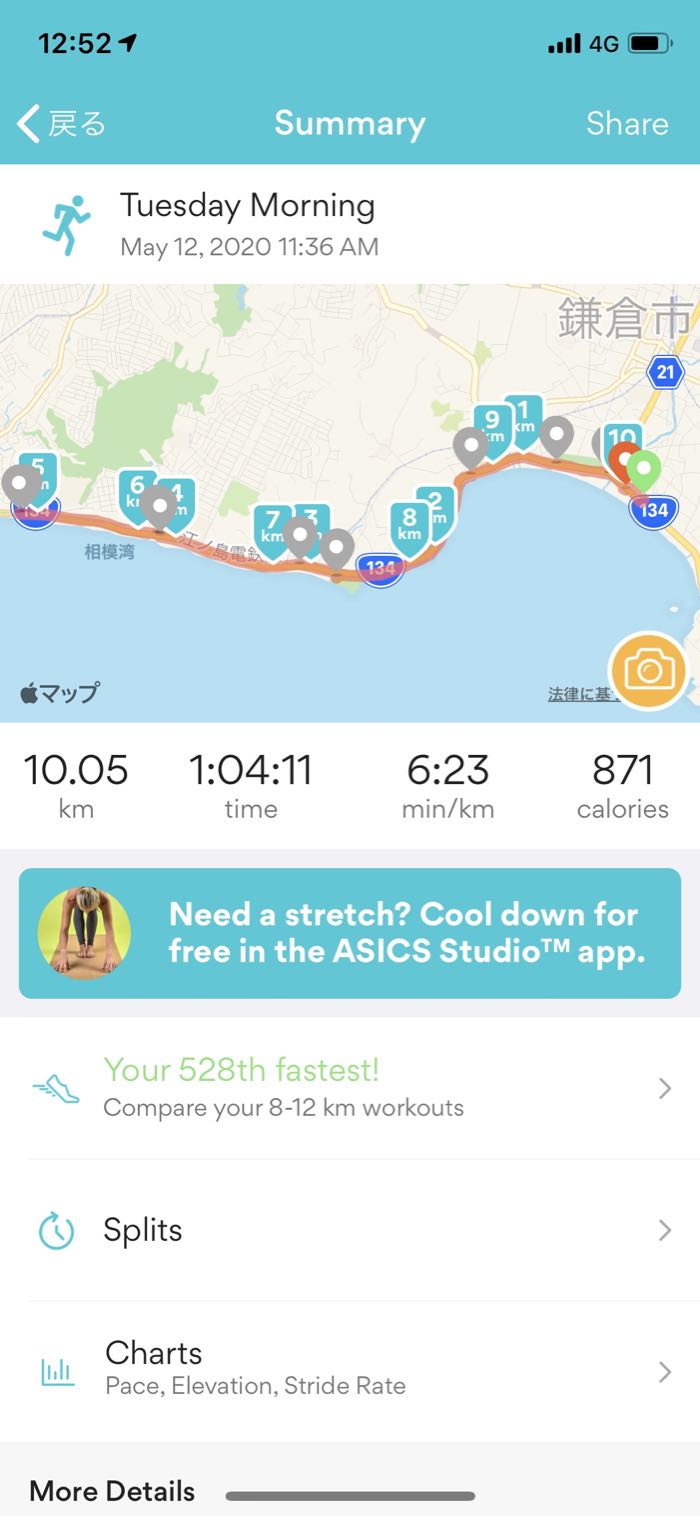 ▲ 頑張って10km走ったらかなり消耗してしまった。