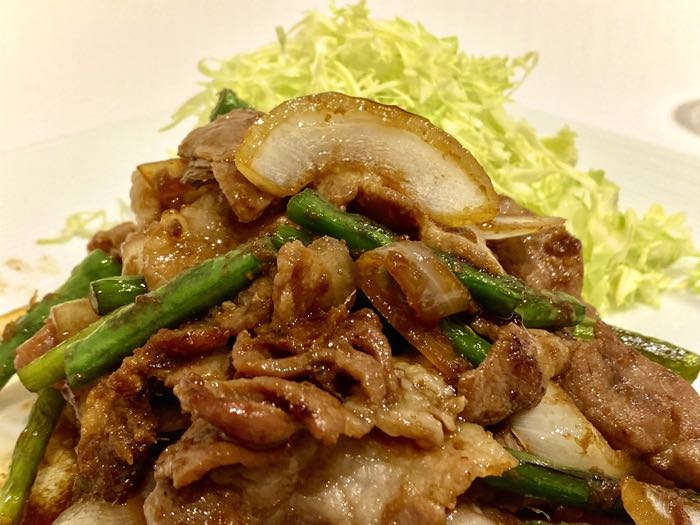 ▲ 豚のしょうが焼き、キャベツの千切り。