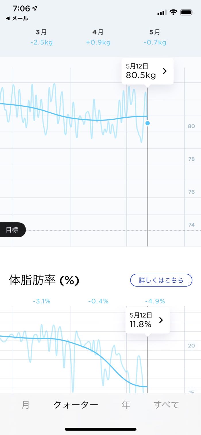 体脂肪率11.8%は今期最低だけど、明らかにこれは不正確なので、ちょっと設定をいじろうかと思う。