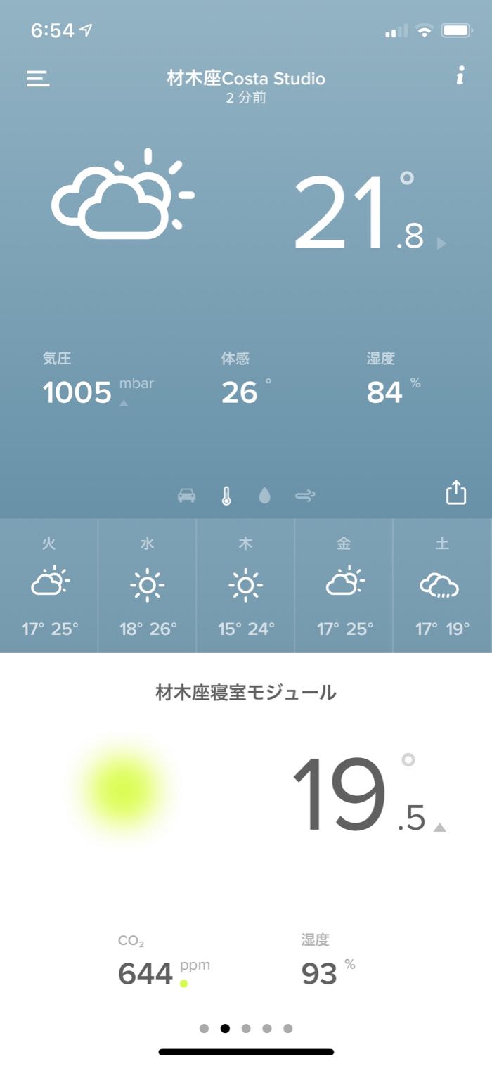 朝の寝室の気温は前日より0.3度低い19.5度。