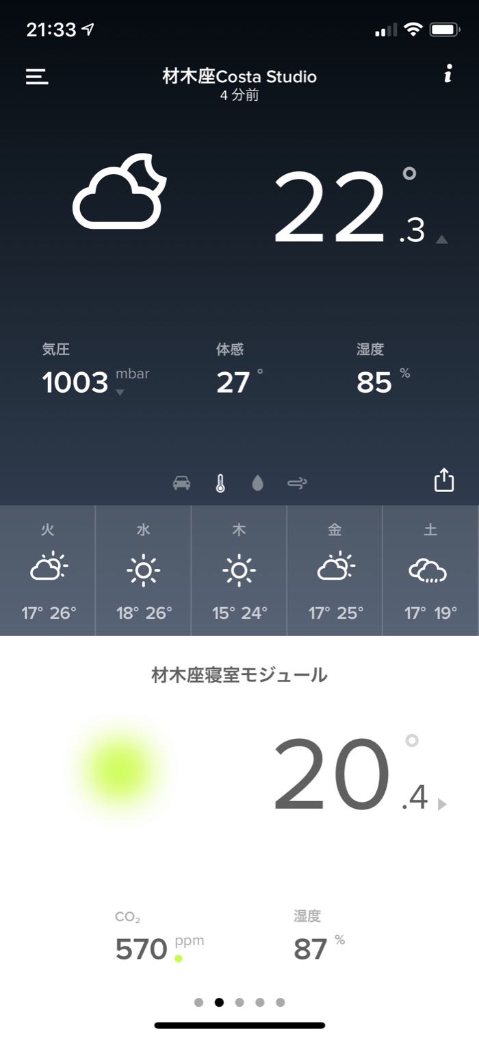 冬場は東京とそんなに変わらないが、夏場は東京より15%くらい湿度が高くなる。