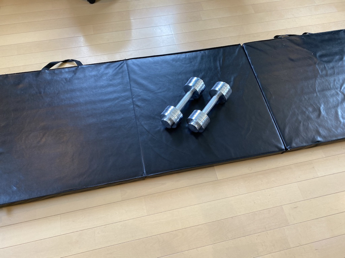 ▲ ダンベルスクワット 10kgで15回を3セット。