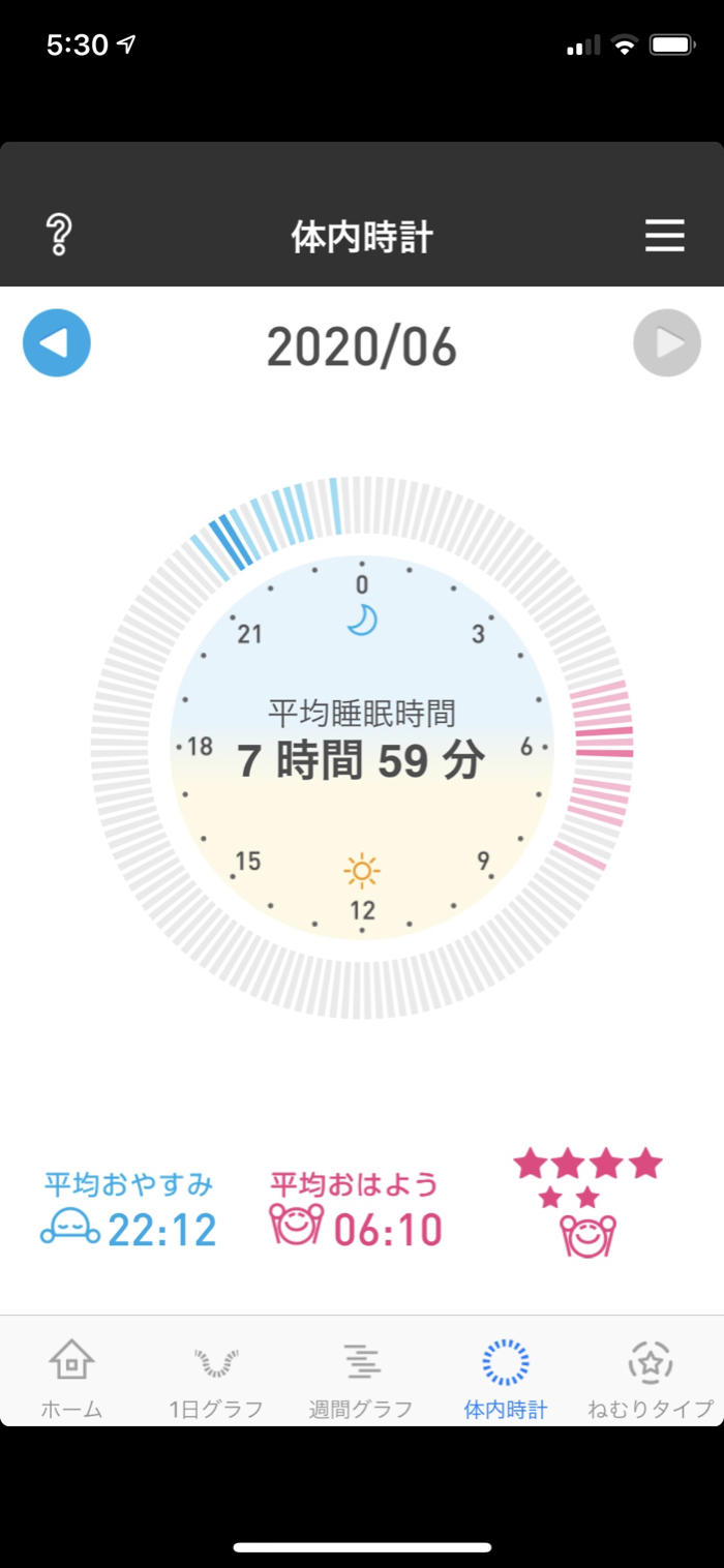 今月は月間平均7時間30分睡眠と、平均おやすみ時刻を22:15にすることが目標。