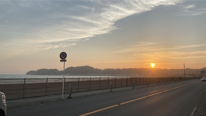 ▲ 梅雨どきとは思えない美しい夕陽に出会えた。