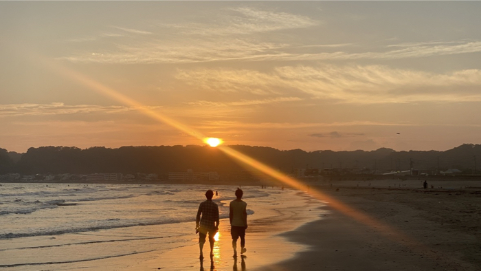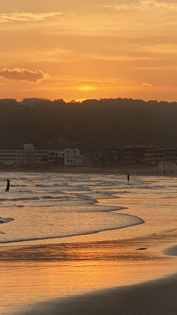 ▲ 夕食を食べ終えて夕陽を見に海に出る。