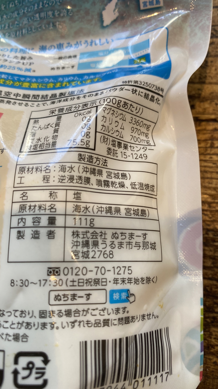 普段料理には粟国の塩をメインで使っているけど、ぬちまーすは一日数回水と一緒に飲むことにしよう。