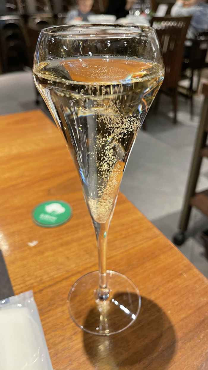 ▲ スパークリングワインで一人乾杯。