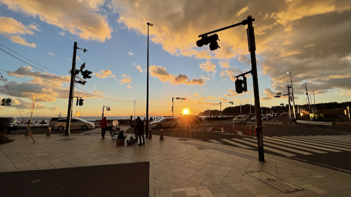 鎌倉海街で今年最後の夕陽を眺める
