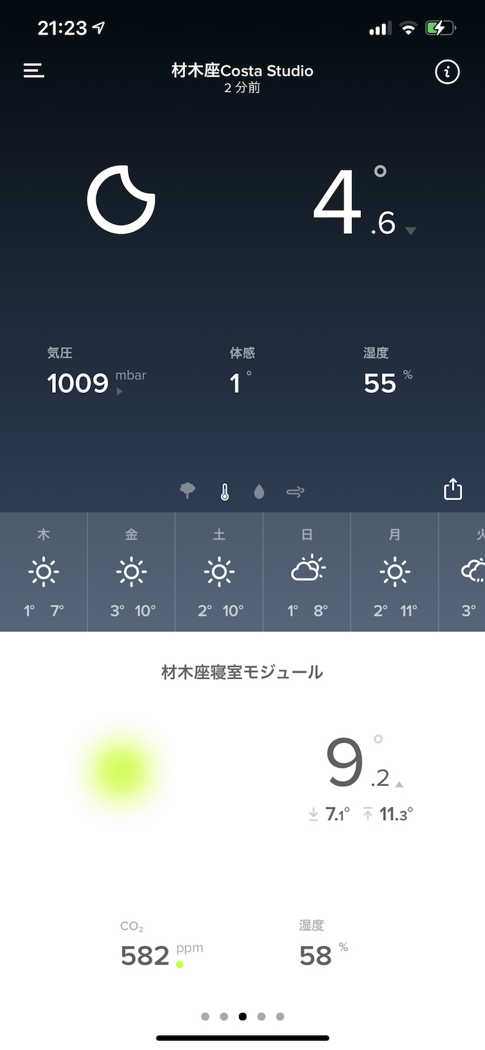 夜の寝室の気温は前夜より2.9度低い9.2度