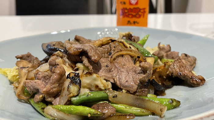 ▲ 晩御飯はニュージーランド産ラム肉のジンギスカン風炒め。