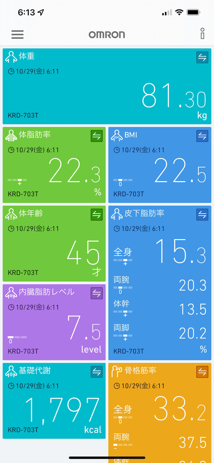 体脂肪率減少傾向が嬉しい朝