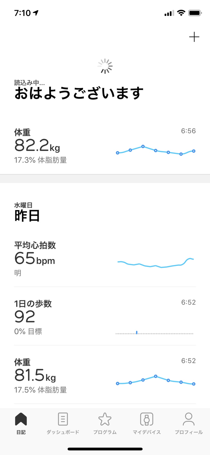 ▲ 前夜のお寿司で体重は微増。