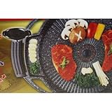 下は鉄板ではなくて炭で作った石板とのこと。左が低くなっていて、肉から出る脂分はどんどん流れていき、穴から下に落ちるようになっている。