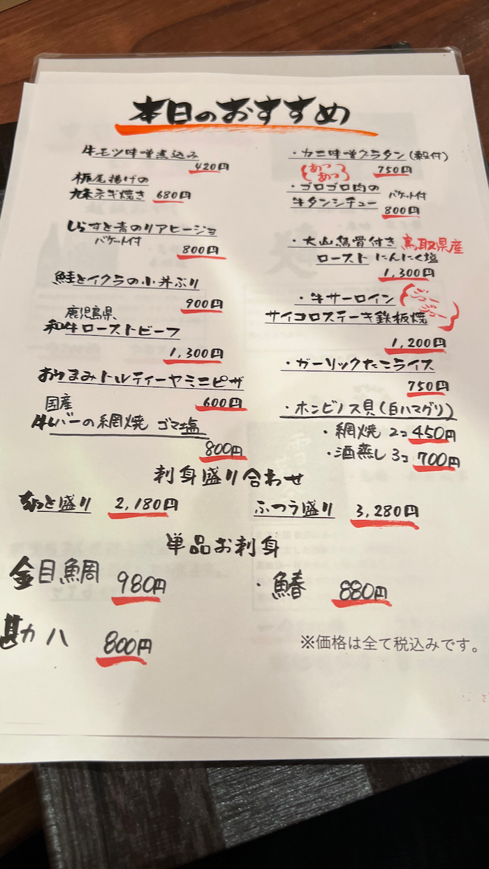 ▲ この日のおすすめメニュー。