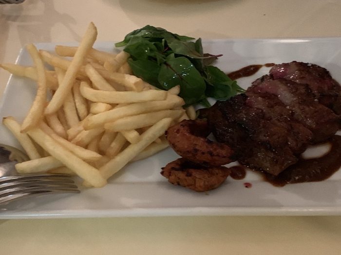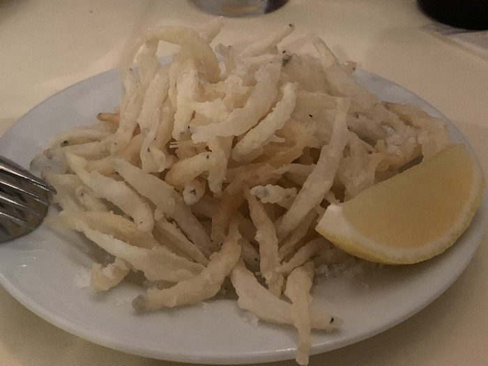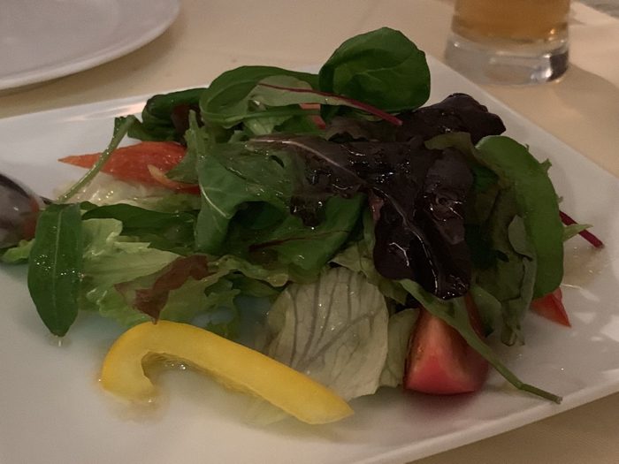 本場だとドレッシングはなしで、塩コショウとオリーブオイルとビネガーが出てくるスタイルだが、こちらはドレッシングがかかっていた。