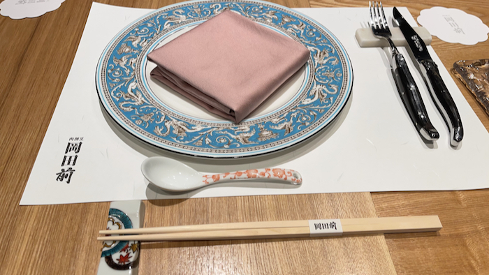 店名の「岡田前」は、The INNOCENT CARVERY時代、1日1組だけが岡田シェフの目の前という特等席を予約できたので、その席を「岡田前」と呼んだことから付いた。